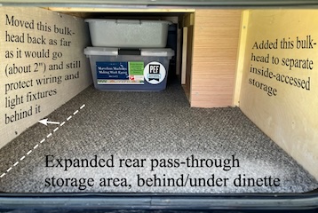 also expanded the forward storage locker slightly. images: original bulkhead (left) and reconfigured bulkheads (right) in forward storage locker |