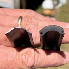 have done. images: original hanger (left) and exhaust-pipe hanger (right) for gray-tank drain pipe |