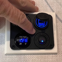 that includes USB and 12V ports and a volt meter. The